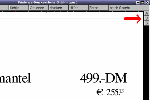 F9 Sofortdruck des aktuellen Schildes mit Weiterarbeit. Wie bei der Start-Möglichkeit mittels Maus-Menü ist hier ein Schild zu drucken, es kann nach dem Start mit F9-Taste (Multitasking!) normal weitergearbeitet werden. Natürlich geht das nur, wenn nicht gleichzeitig schon ein anderes Schild auf diesem Drucker gedruckt wird oder batch läuft.