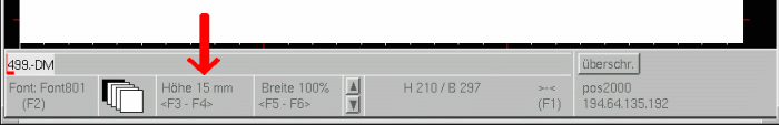 Pause Mit dieser Taste erzeugt der Computer aus einer 13-stelligen Zahl im Eingabebalken ein Signet mit dem entsprechenden EAN-Code. Der Signetname steht dann anstelle der Nummer im Eingabebalken. (Beispiel: Nummer 4003071109869 steht im Eingabebalken, Sie drücken PAUSE nun ist das Signet "signets/ean/..." im Eingabebalken)